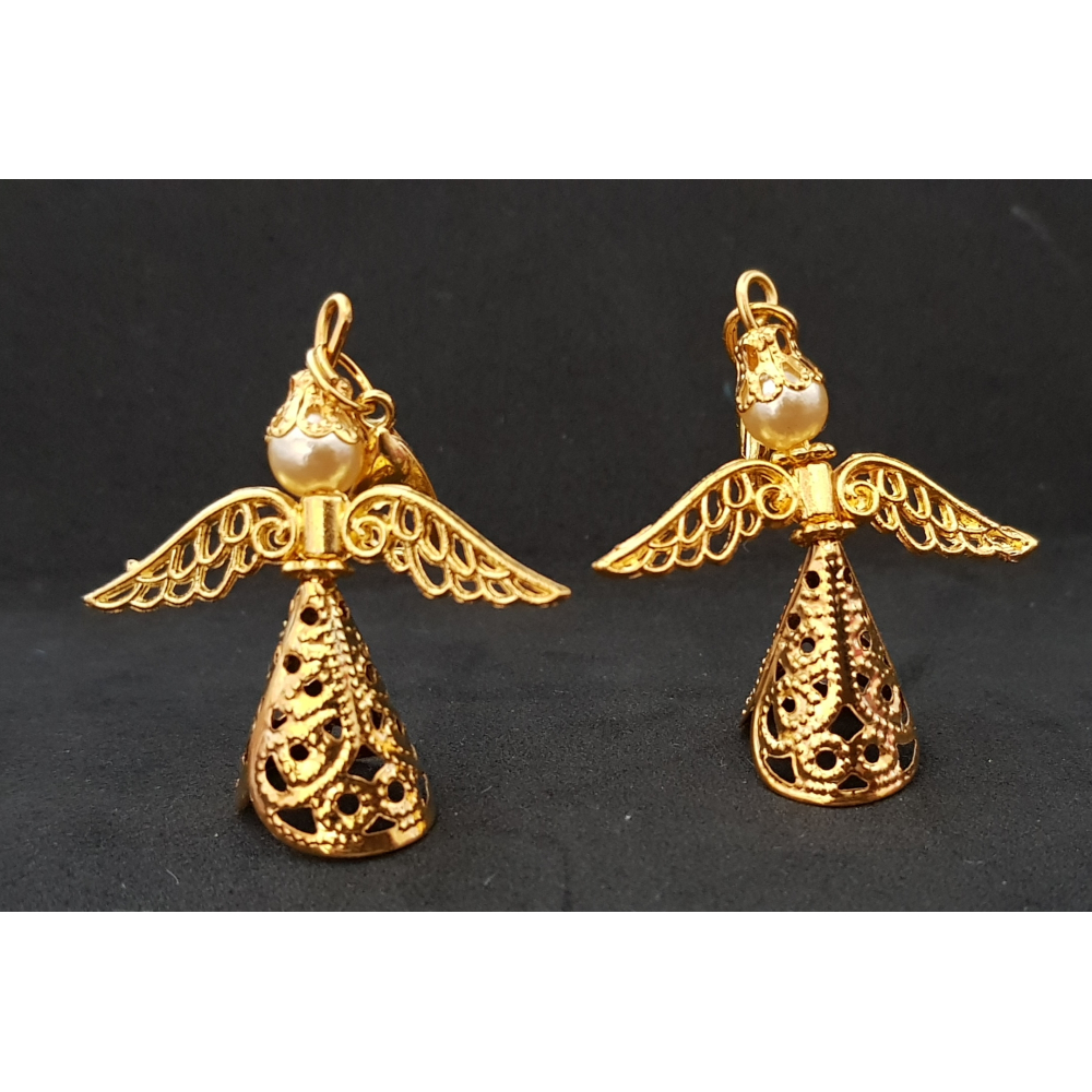 Goudkleurige geluksengeltjes met gouden basis (Gouden rok, gouden vleugels en gouden kreeftsluiting).